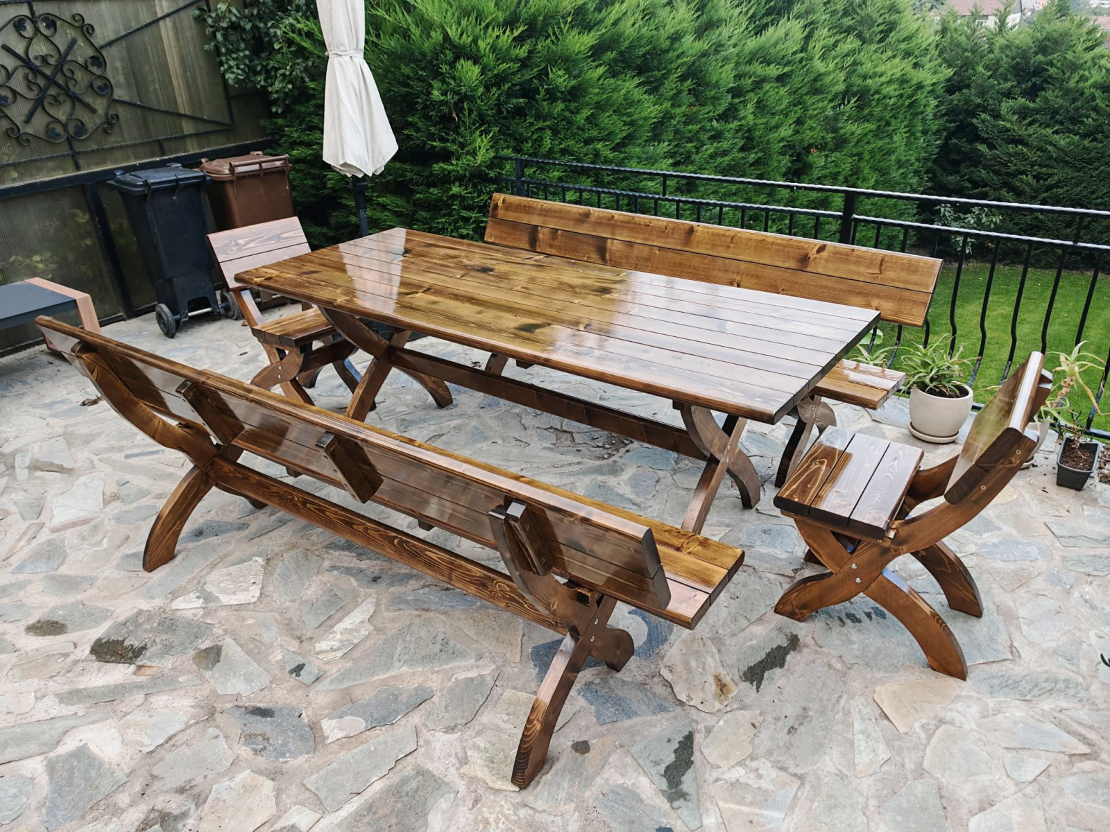 Masa cu 2 banci de 1,95 metri si 2 scaune